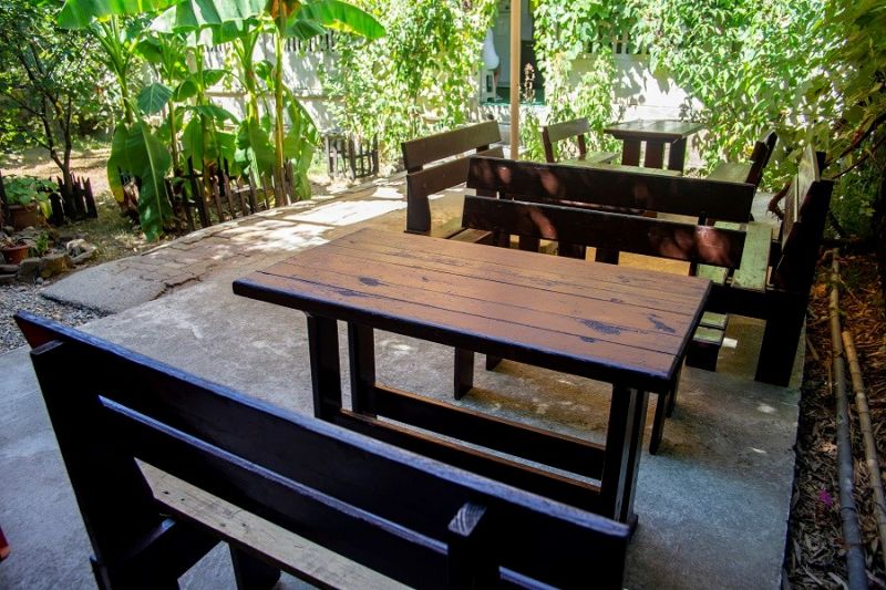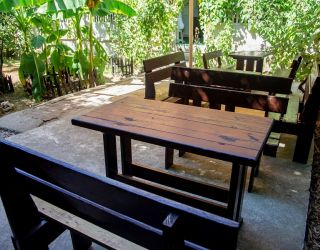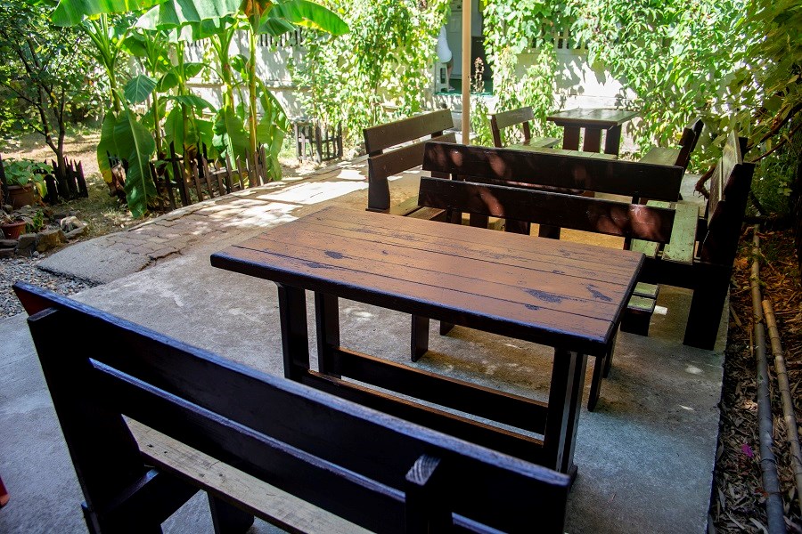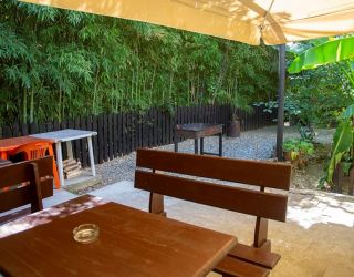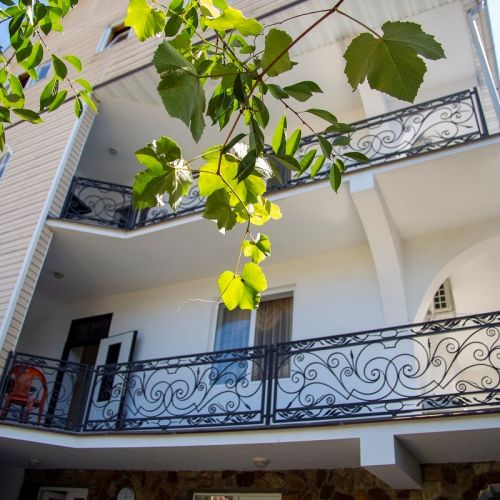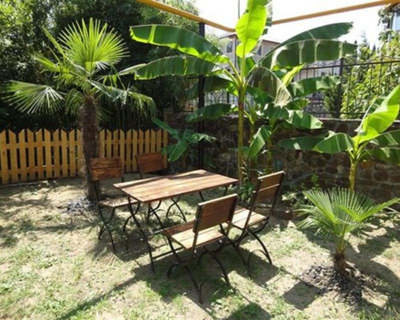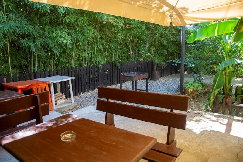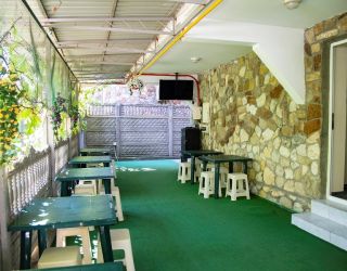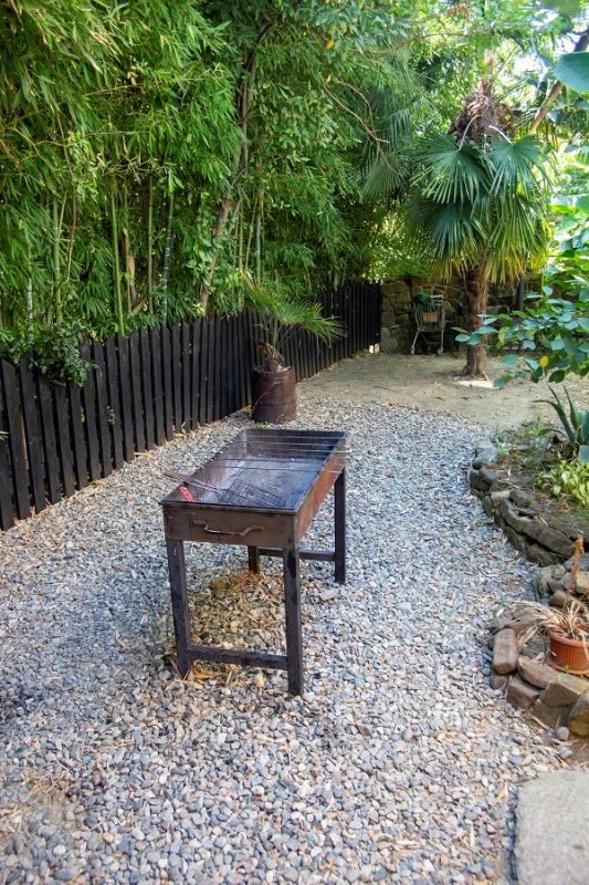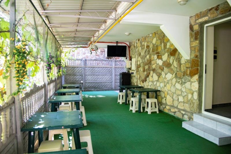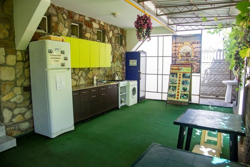 Во дворе отеля есть летняя кухня для самостоятельного приготовления еды, которая оборудована всей необходимой техникой и посудой. С 1 этажа можно выйти на мангальную и парковую зону двора. На свежем воздухе установлены места отдыха со столиками.